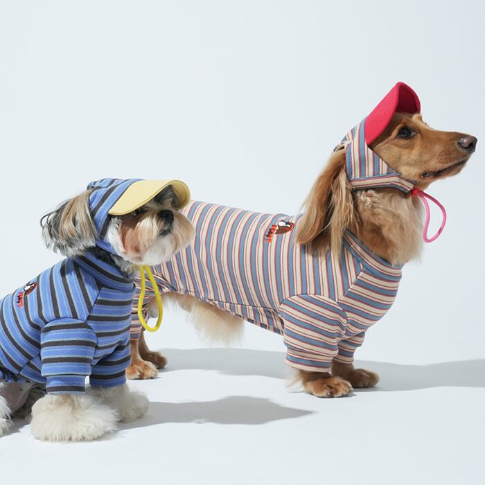 二重ストッパーでズレにくい。爽やかストライプで、日差し対策も写真映えも。
