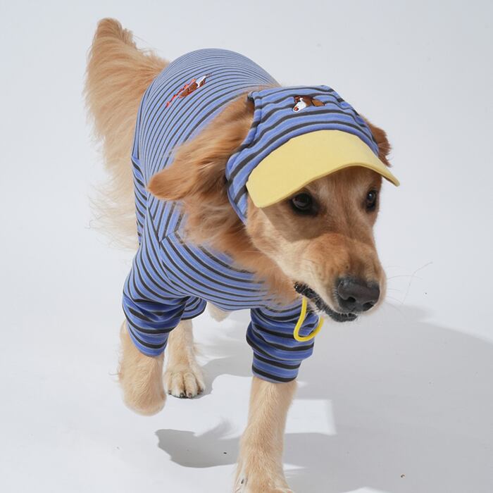 ・爽やかストライプ×ロゴ刺繍でお顔を明るく