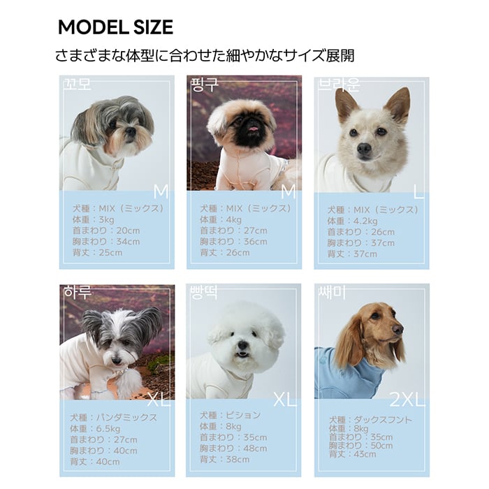 2XLサイズ:首回り 37cm/胴回り 54cm/着丈 40cm