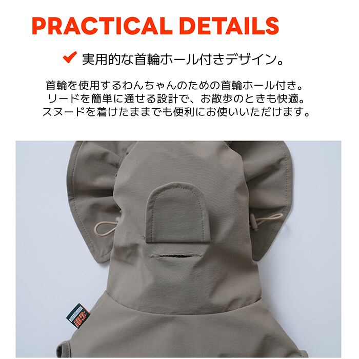 首から耳まですっぽり包み込み、冷たい風やほこりから愛犬をしっかりガードします。