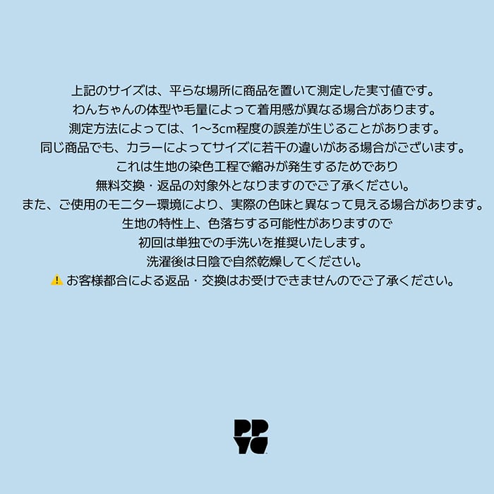カラーによってサイズ感が異なる場合があります(染色工程による生地の縮みのため)。返品・交換の対象外となります。