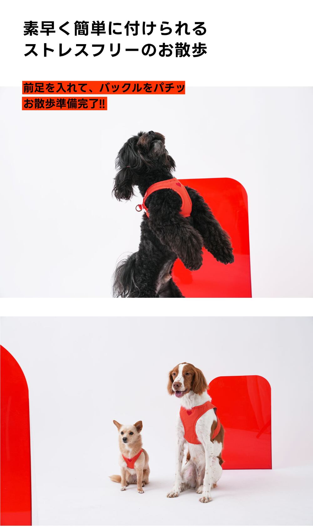 ワンちゃんにも飼い主さんにも嬉しい、ストレスフリーなハーネスです。
