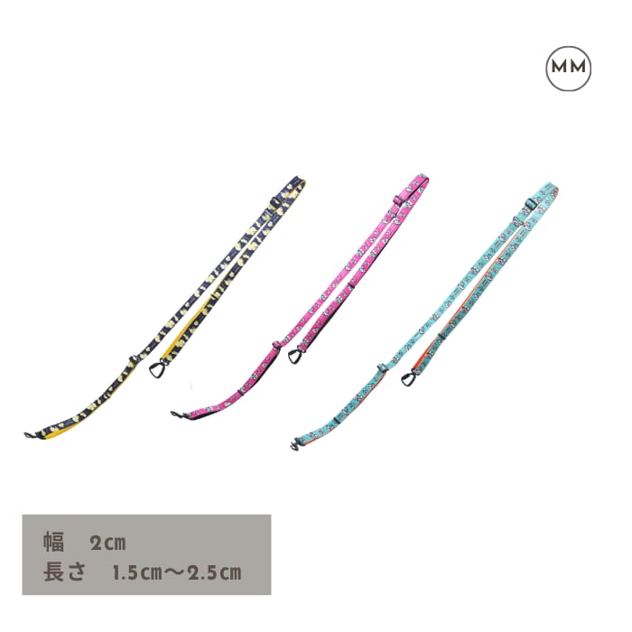 幅2cm・長さ1.5〜2.5mに調節可能・重さ約25g の多機能リードです。