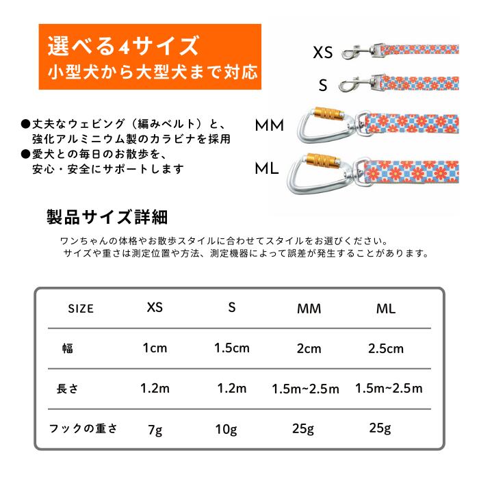 幅2cm・長さ1.5〜2.5mに調節可能・重さ約25g の多機能リードです。