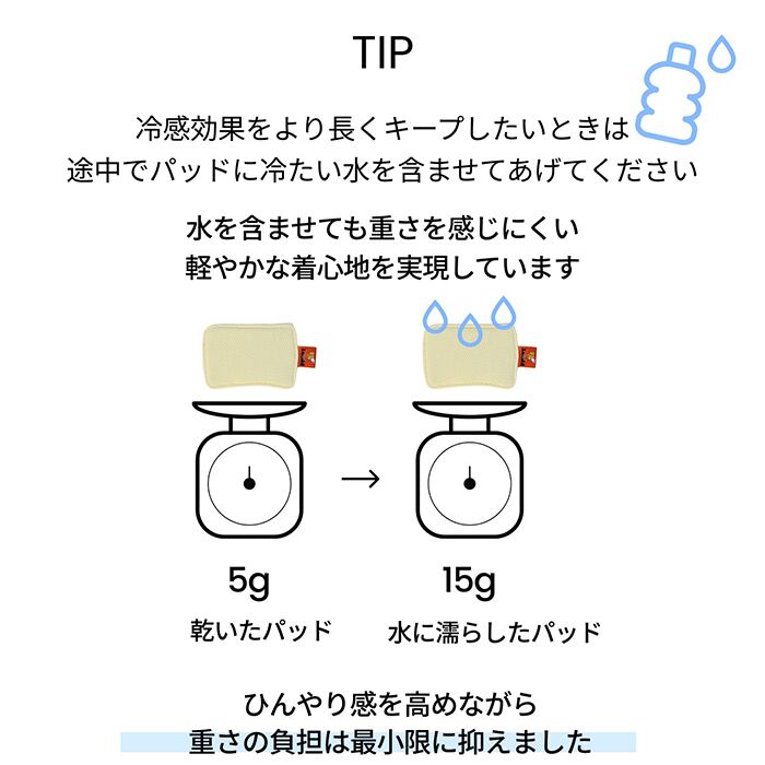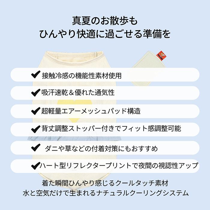 接触冷感素材に加え、背中部分に装着できるエアメッシュ保冷パッドで、愛犬の体温上昇をやさしくサポートします。