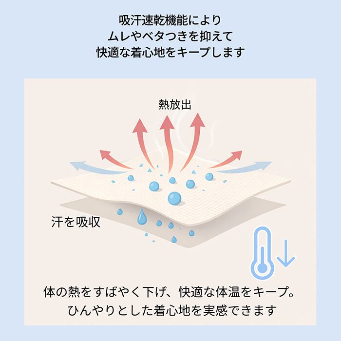 空気の層をつくることで熱を逃がし、効率よく体温上昇を抑えます。