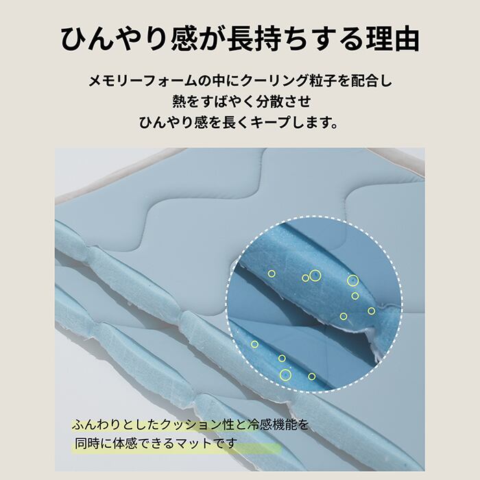 メモリーフォーム内部に冷却粒子を配合。