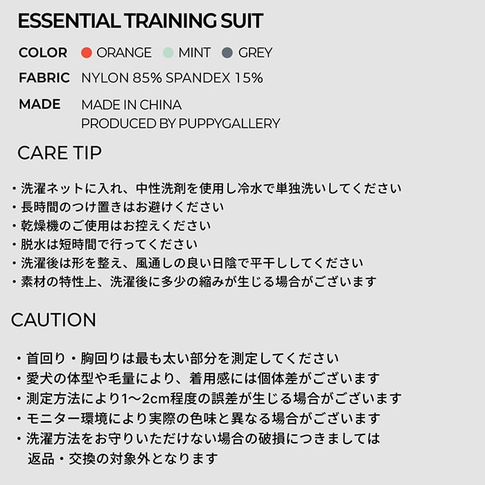 【puppygallery公式】Essential Training Suit (Standard leg) 4XL-5XL